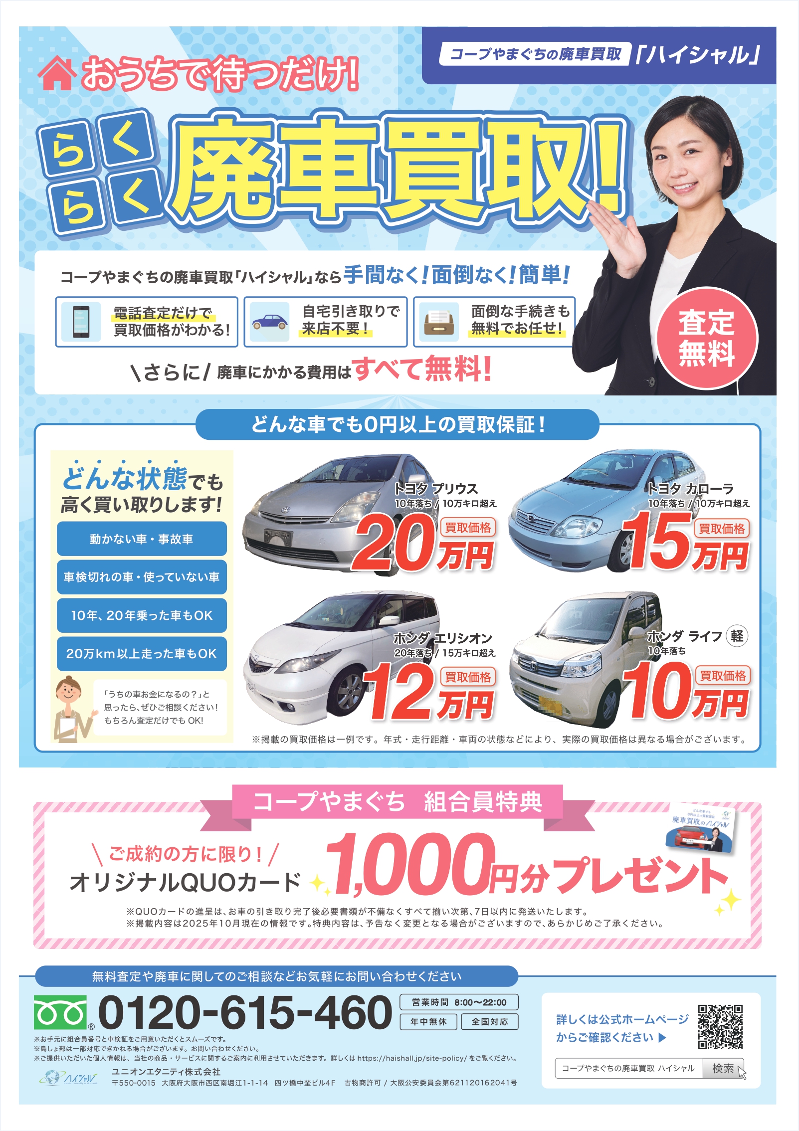 廃車ご成約でオリジナルクオカード1,000円分プレゼント