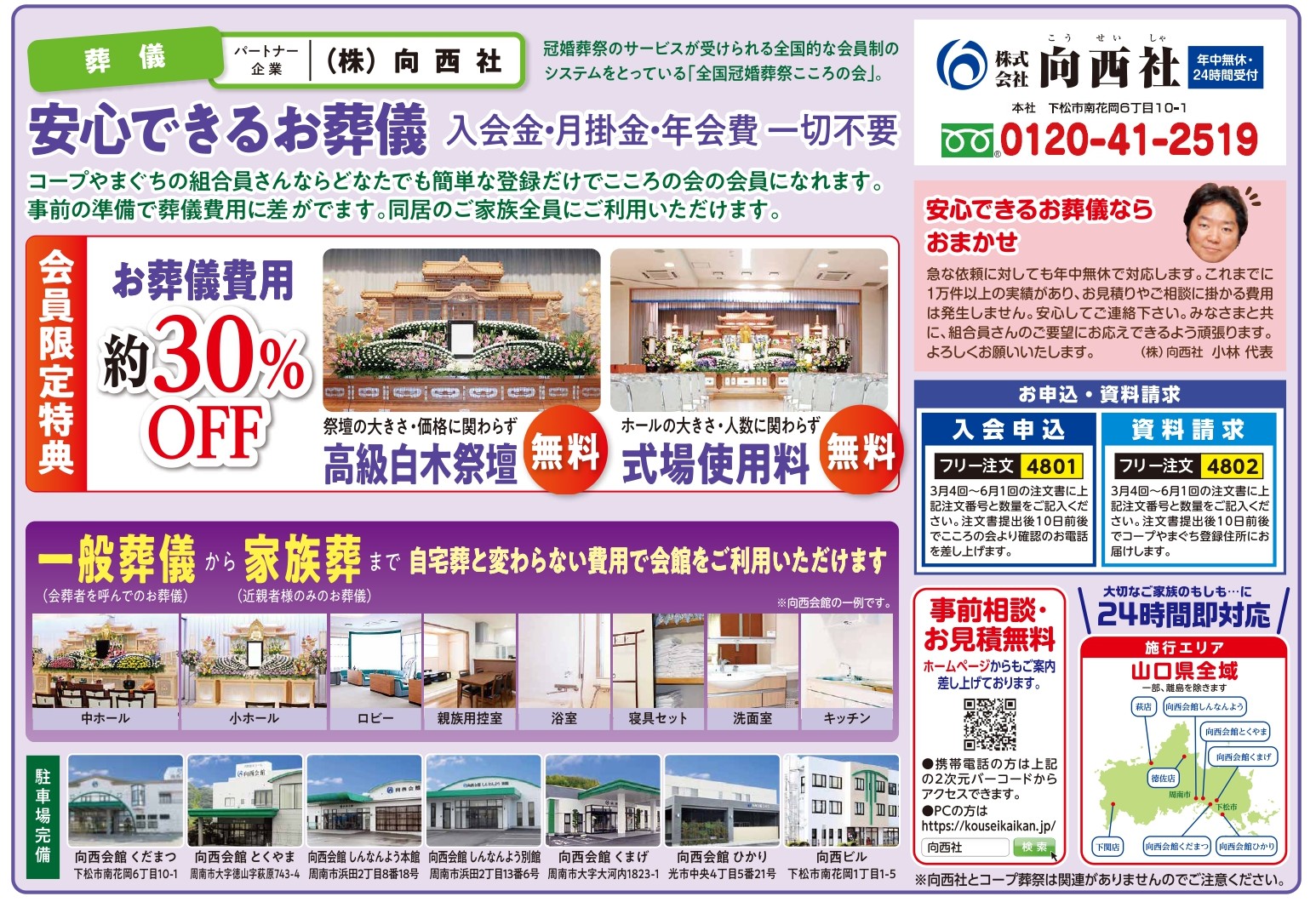 こころの会はコープやまぐちと葬儀分野で提携し、安心できる特典を提供しています。