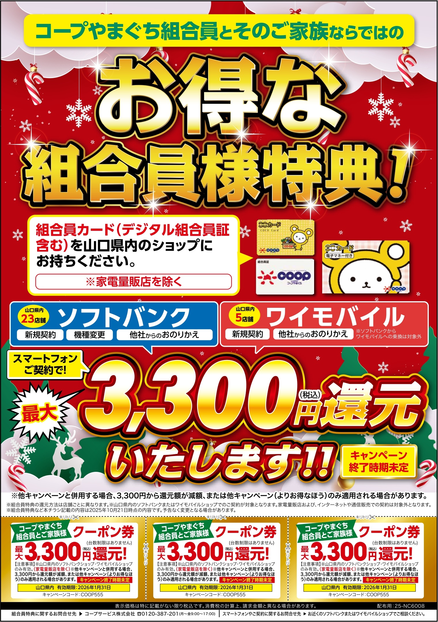 「ソフトバンク」または「ワイモバイル」で新規契約、機種変更などスマホ、携帯電話のことならおまかせください。コープやまぐち組合員の方とご家族は、組合員特典が受けられます♪